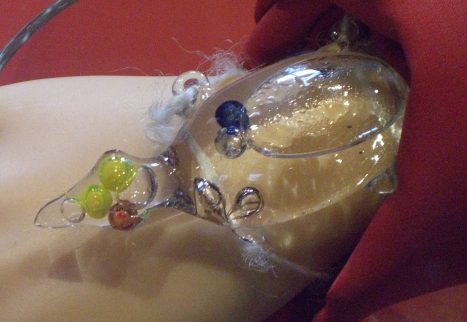 Vermutlich als Examensarbeit an der Glasfachschule Wertheim in den 1970er Jahren entstand die Nachbildung dieser gläsernen „Schildkröte“. Das Original wurde im 17. Jahrhundert von Galileo Galilei an der Universität von Florenz entwickelt. Die „Kröte“ verweist auf die mehr als 60jährige Thermometerproduktion in Wertheim. Thermometer-Glasbläser waren die ersten Glasbläser, die sich 1948 im Zuge des Flüchtlingsstroms aus Thüringen in Wertheim niederließen. Unter ihnen waren die heute noch existierenden Thermometerfirmen Arno Amarell und Karl Schneider.